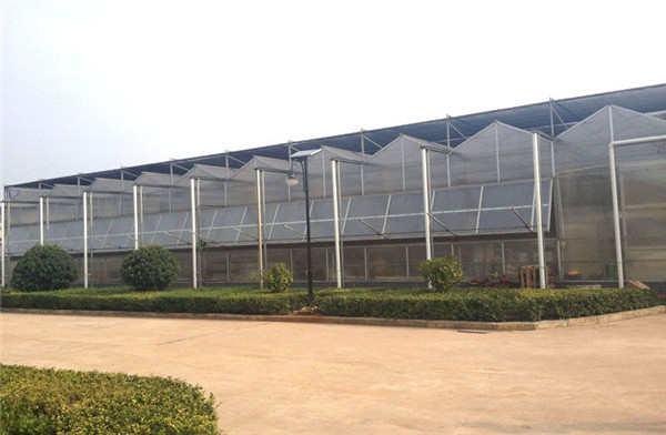采用熱鍍鋅鋼制骨架,覆蓋材料為5mm鋼化玻璃,透光率在九十以上。溫室大棚頂部及四周為專用鋁型材。溫室大棚頂部為雙向開窗,齒輪齒條副傳動。根據用戶需要,溫室大棚兩個端面可安裝濕簾和風機,也可在兩個端面及側面安裝鋁型材推拉窗、平開窗或外翻窗。