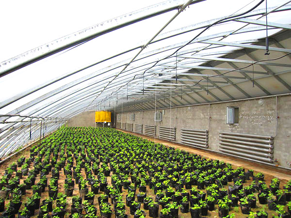 前坡面夜間用保溫被覆蓋,東、西、北三面為圍護(hù)墻體的單坡面塑料溫室,統(tǒng)稱為日光溫室。其雛型是單坡面玻璃溫室,前坡面透光覆蓋材料用塑料膜代替玻璃即演化為早期的日光溫室。日光溫室的特點(diǎn)是保溫好、投資低、節(jié)約能源,非常適合我國經(jīng)濟(jì)欠發(fā)達(dá)農(nóng)村使用。